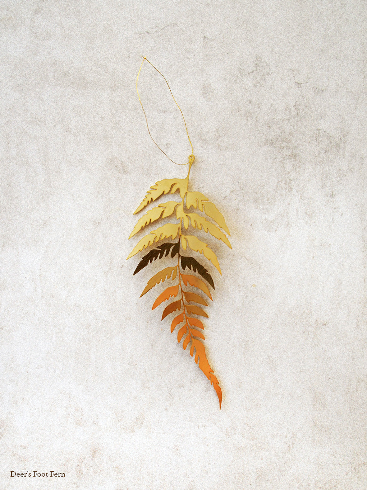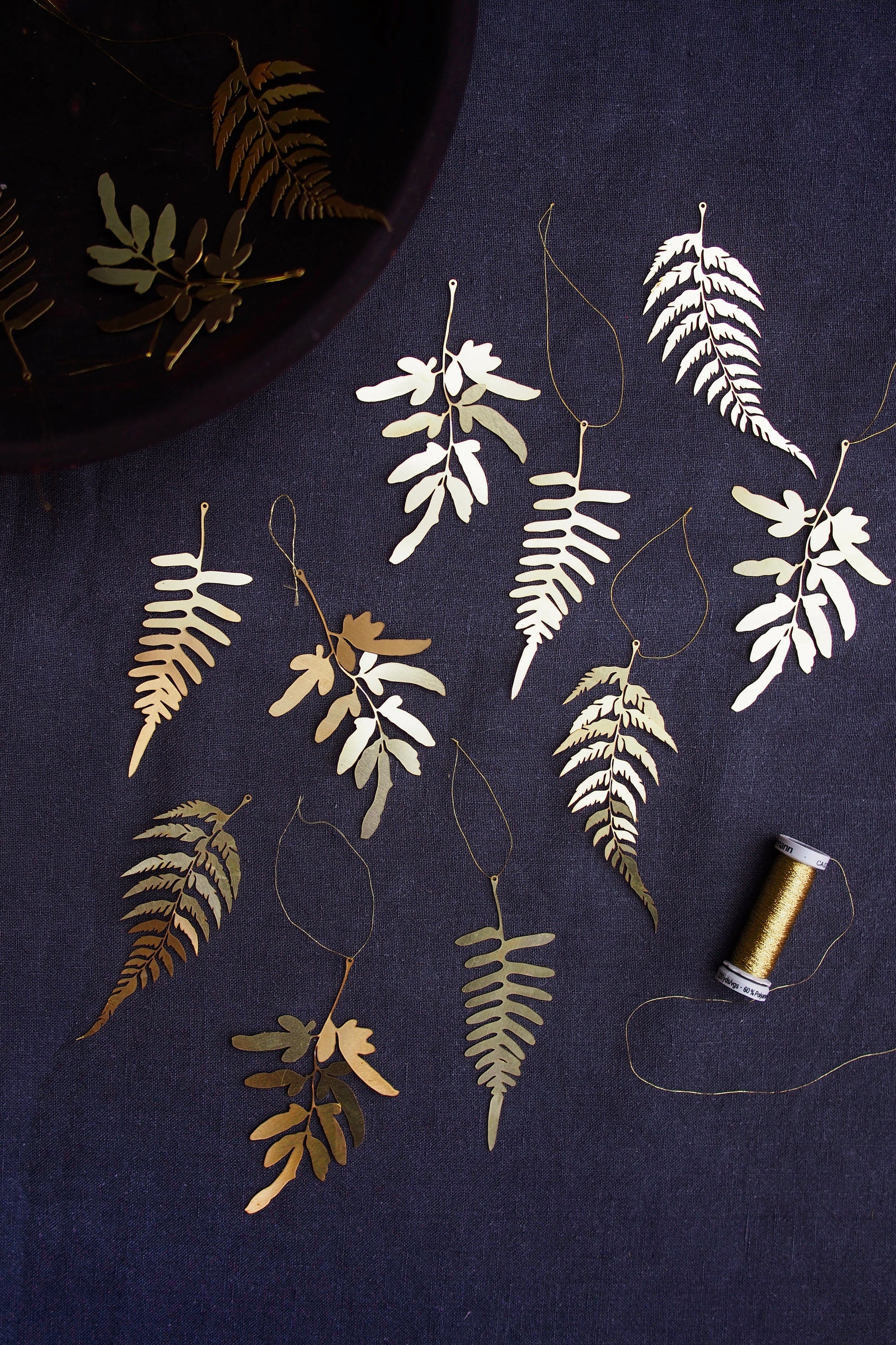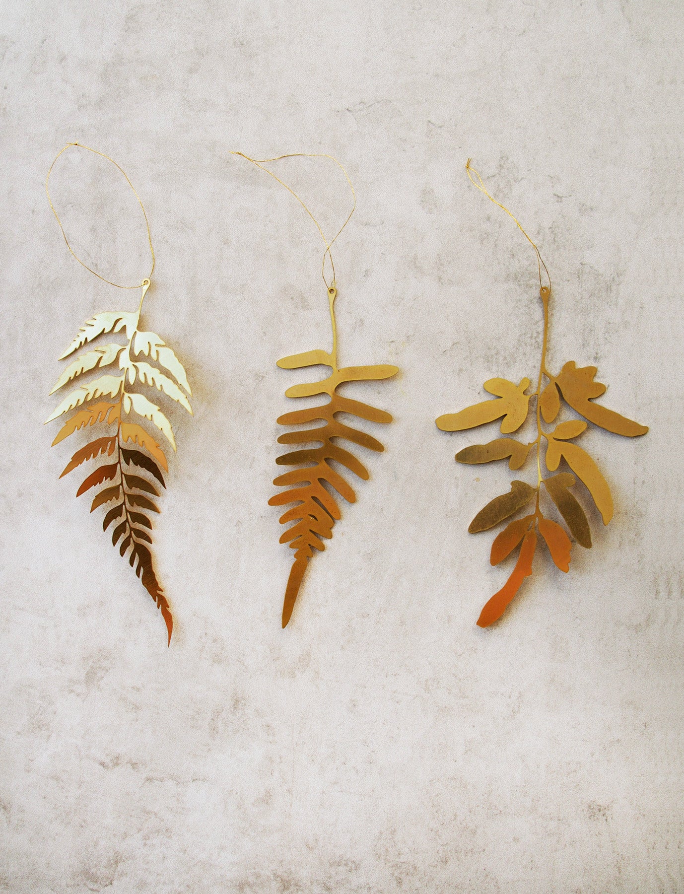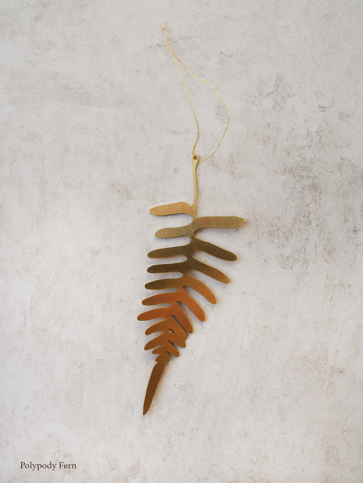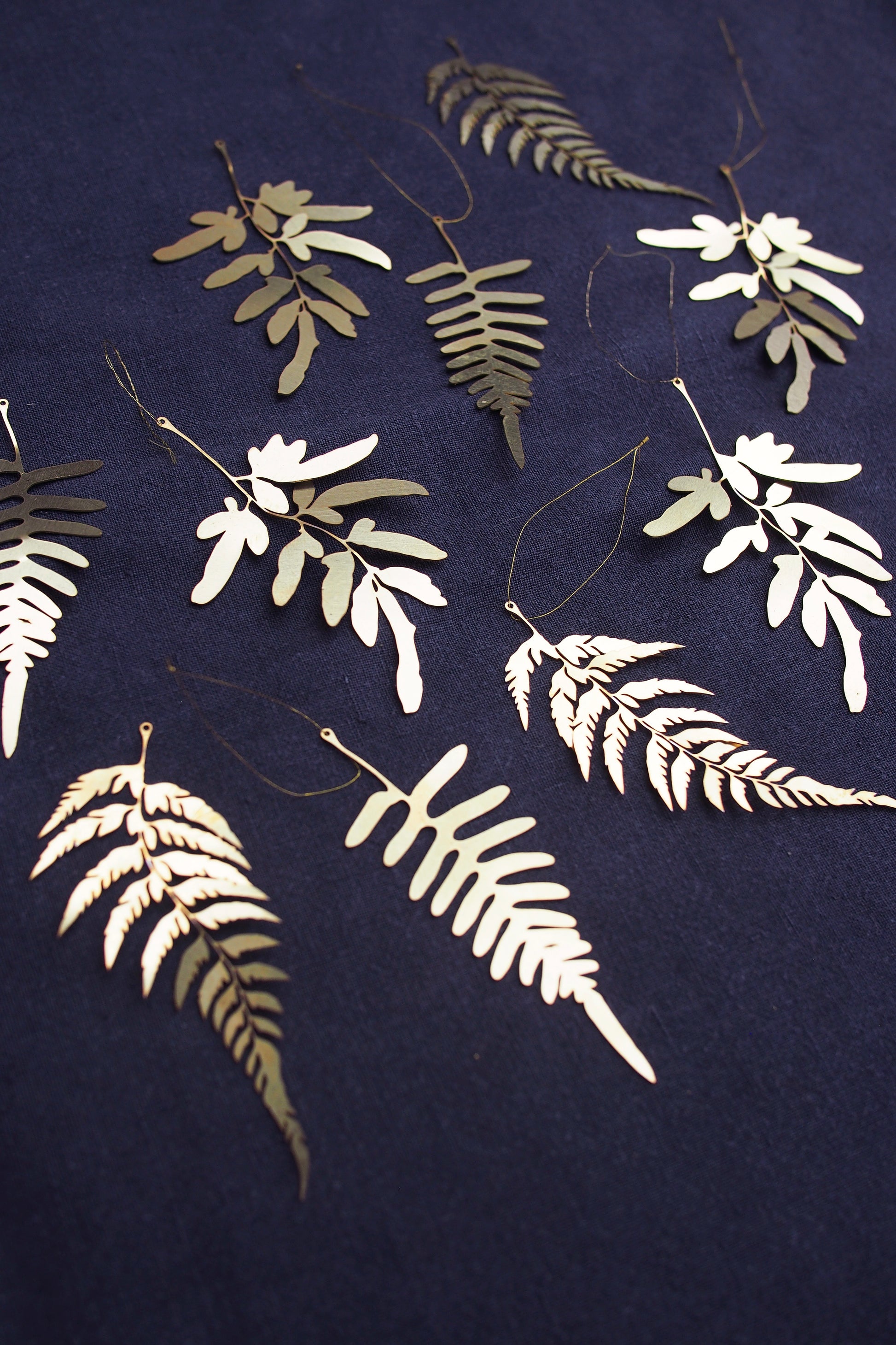 A set of three delicate brass ornaments crafted from our finest fern pressings, each one chosen for its unique shape and silhouette. These timeless ornaments are perfect for gifting or cherishing as year round adornments in your home.
