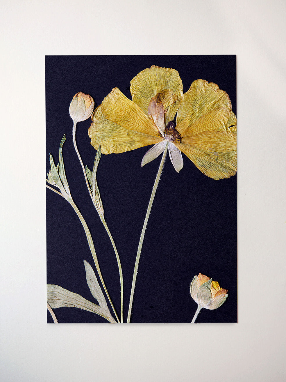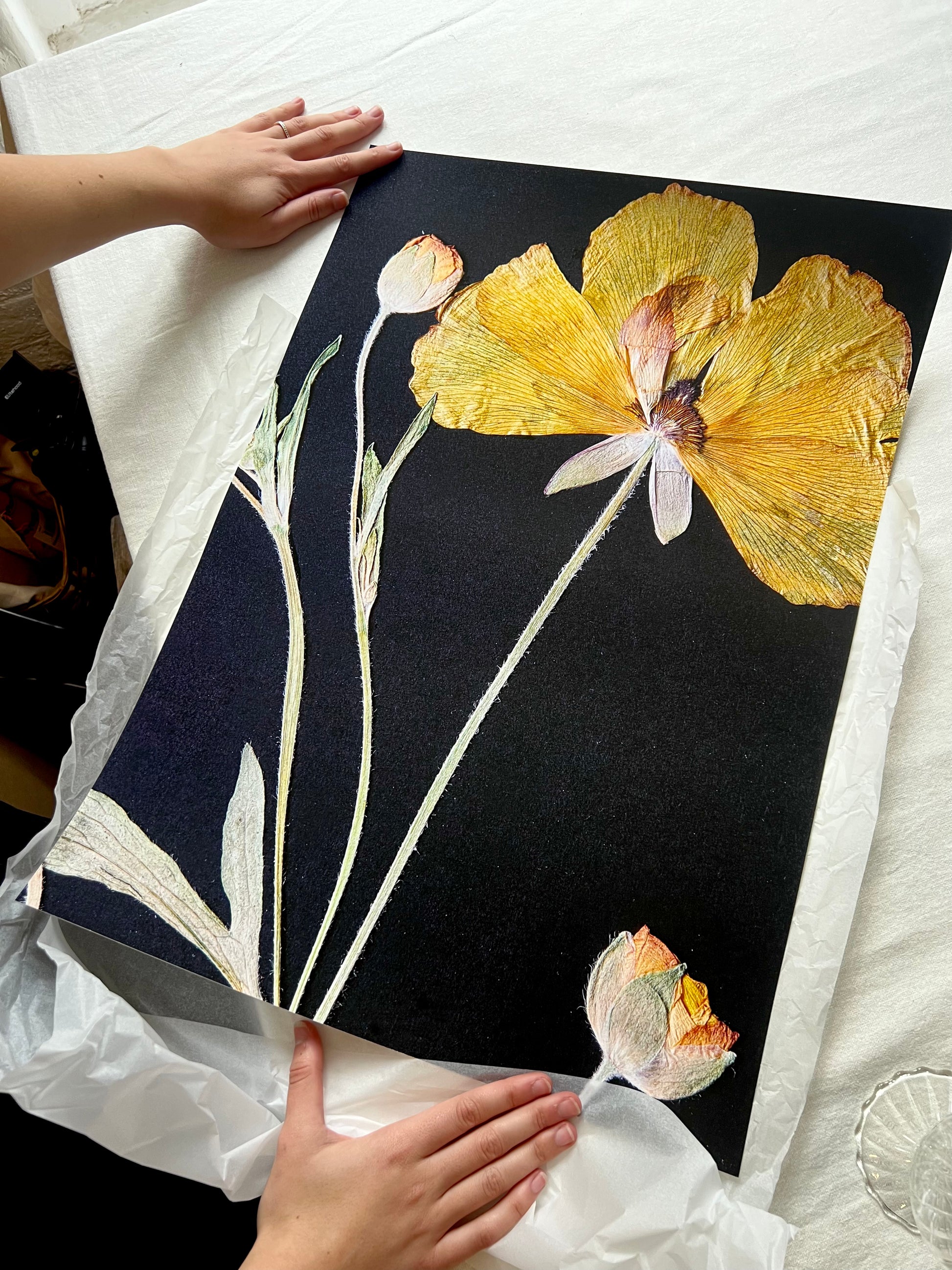 A close-up print of a pressed Butterfly Ranunculus photographed by Helen Cathcart for our book, The Modern Flower Press. Also in this series of three prints is a Cosmos and a Tulip.