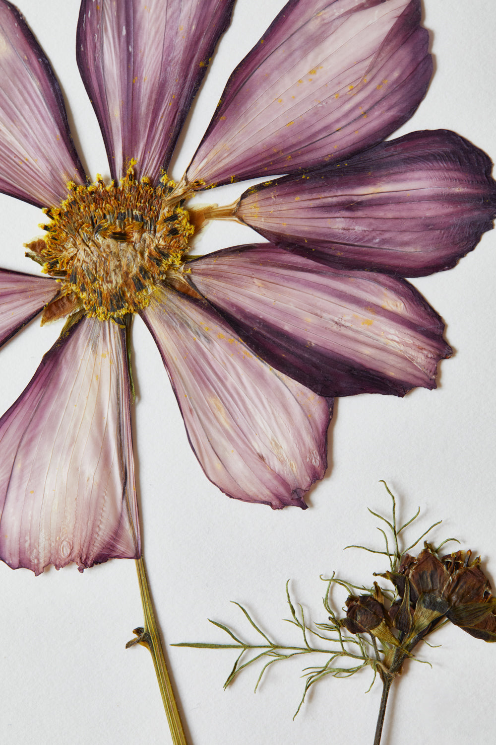A close-up crop of a pressed Cosmos photographed by Helen Cathcart for our book, The Modern Flower Press. Also in this series of three prints is a Butterfly Ranunculus and a Tulip.