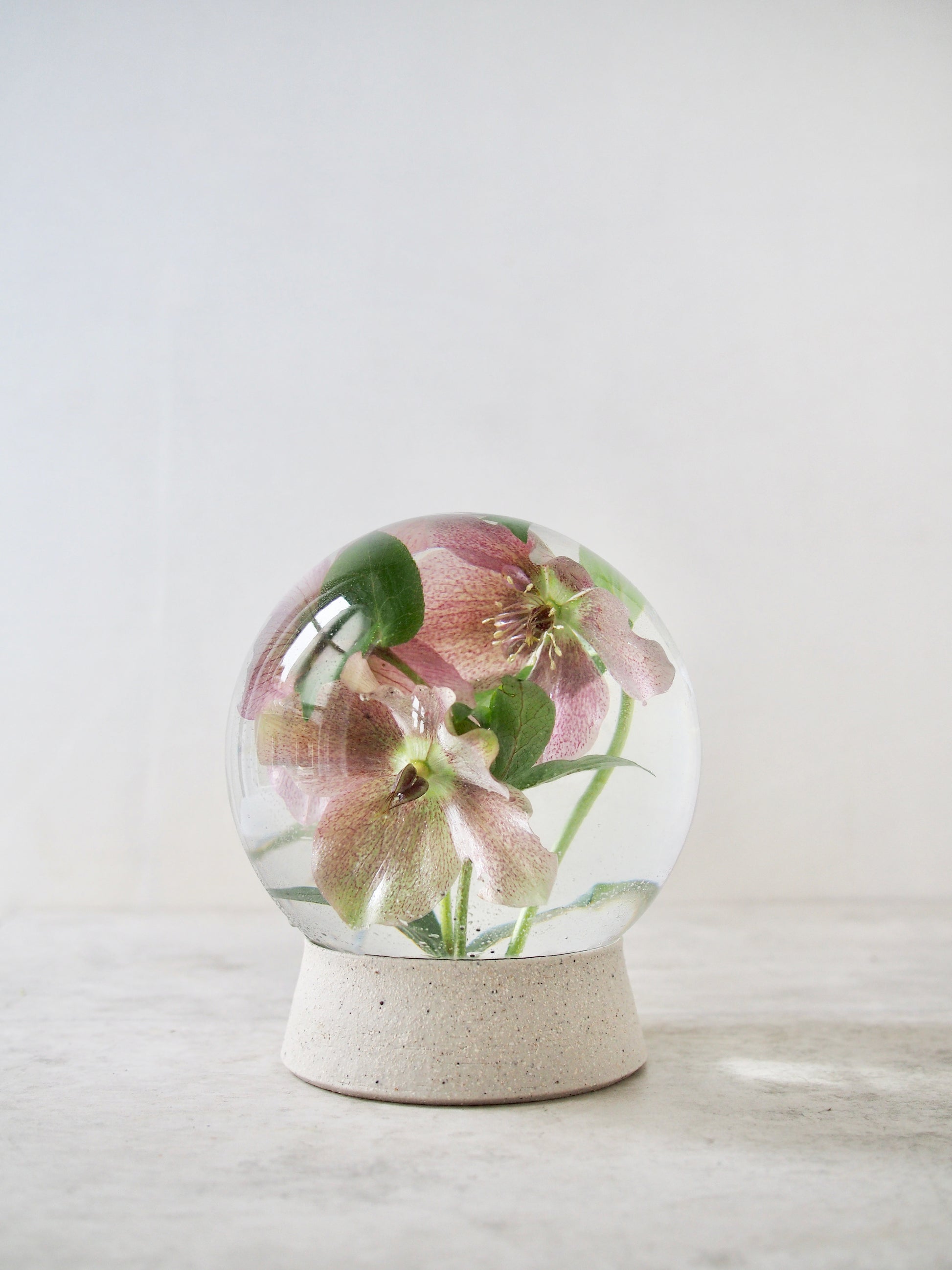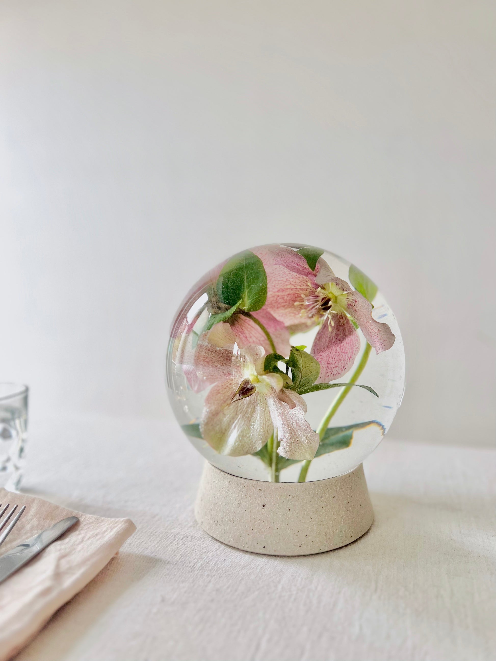 A modern take on a mid-century rose globe, which we first saw in an old fashioned flower room on the Isle of Wight many years ago. Simply position a freshly cut stem or two in the rubber base and fill the globe with water to create a magical centrepiece for the table.