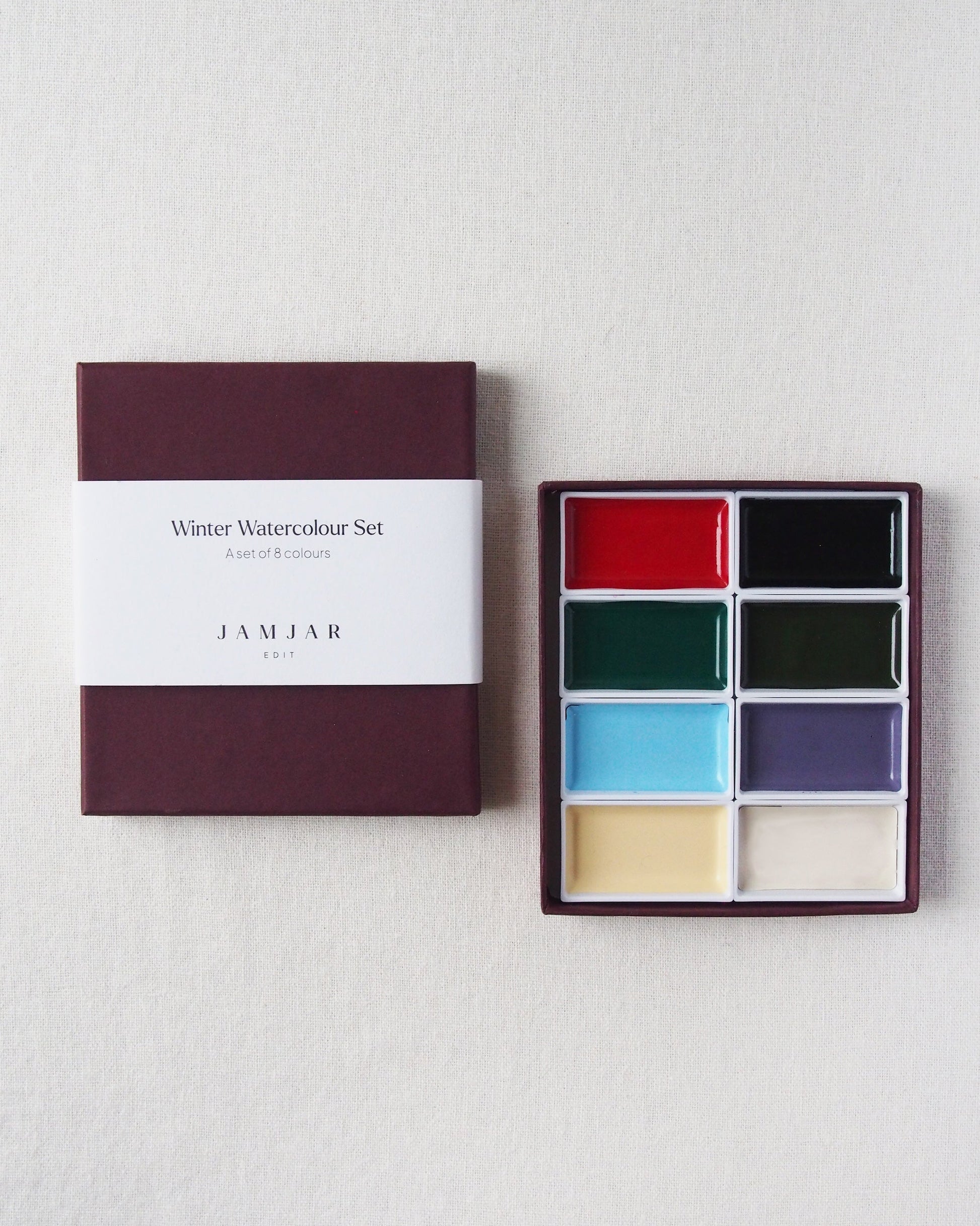 Available as individual sets of 8 paints or as a complete set of 4 Seasonal Watercolour palettes.