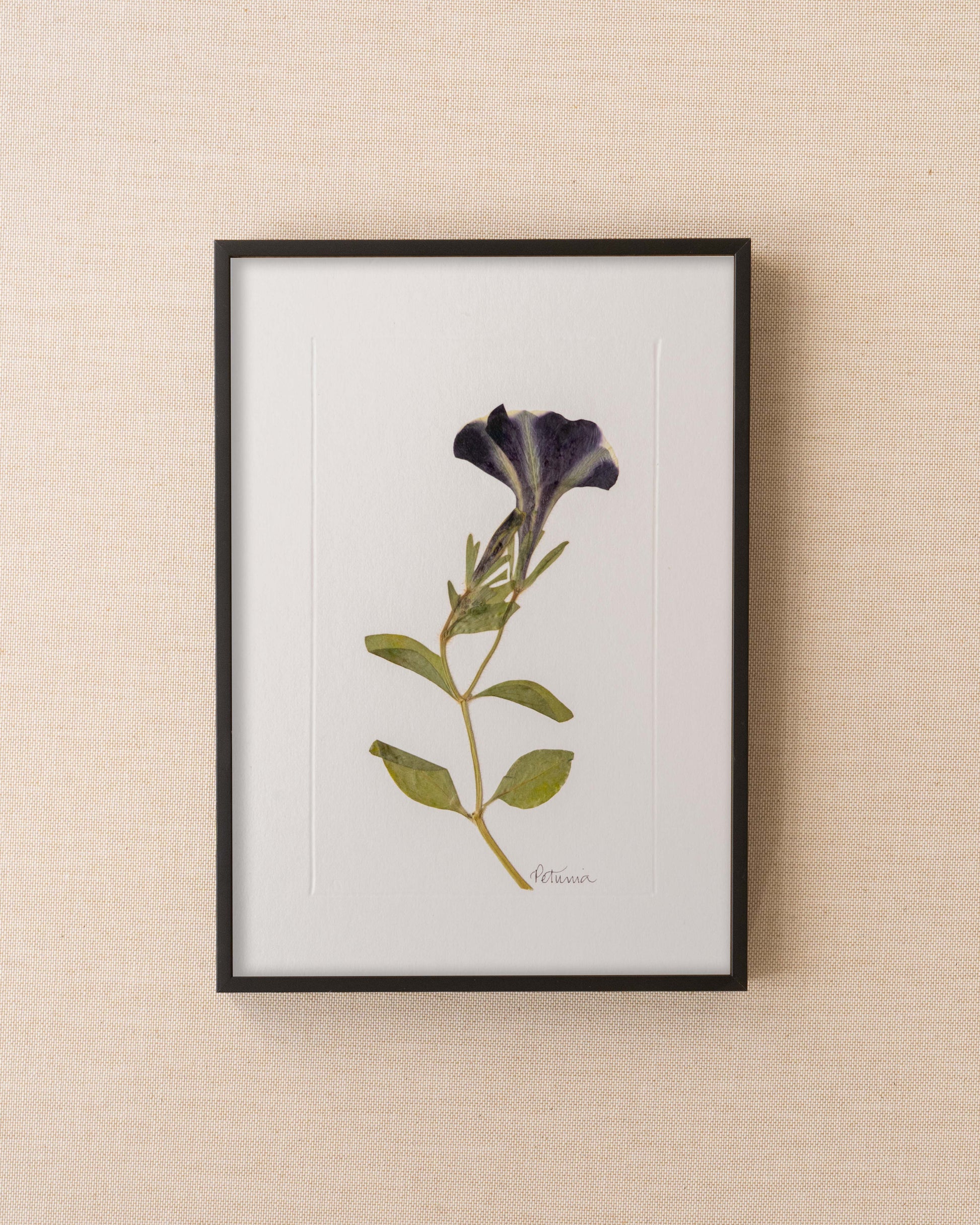 Petunia: pressed at our London studio using traditional methods, mounted on-off white 1400 micron board.
