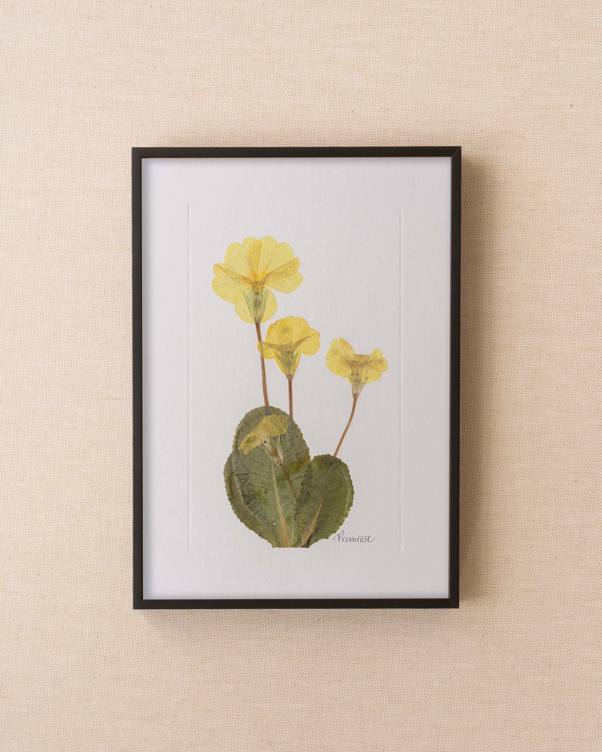 Primrose: pressed at our London studio using traditional methods, mounted on-off white 1400 micron board.