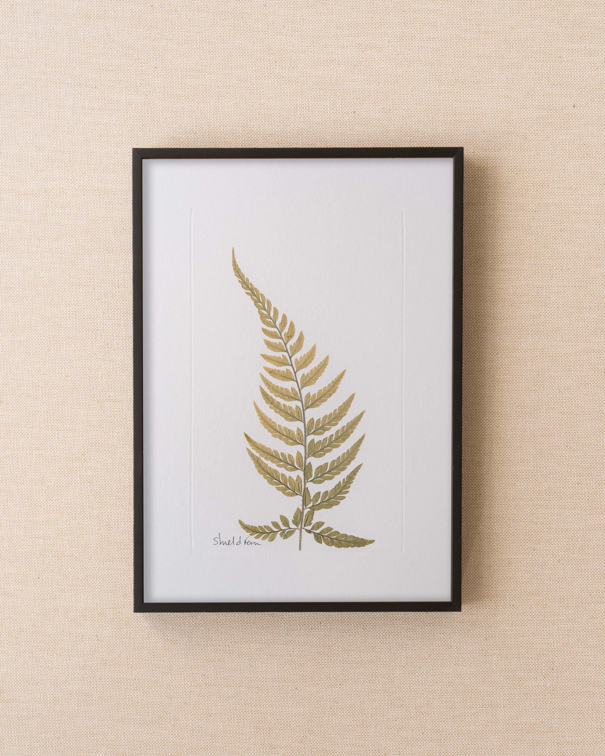 Shield Fern: pressed at our London studio using traditional methods, mounted on-off white 1400 micron board.