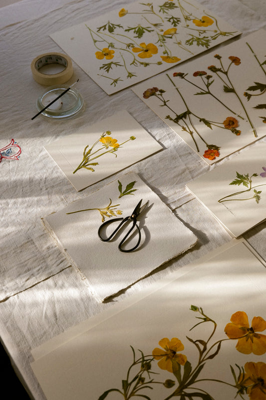 Learn how to capture the fleeting beauty of seasonal flowers at our London studio and beyond. Our pressed flower workshops will teach you how to select and press flowers to get the best results, and how to compose and mount your own pressed flower artworks.